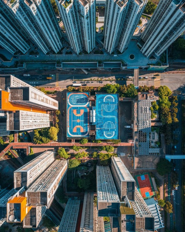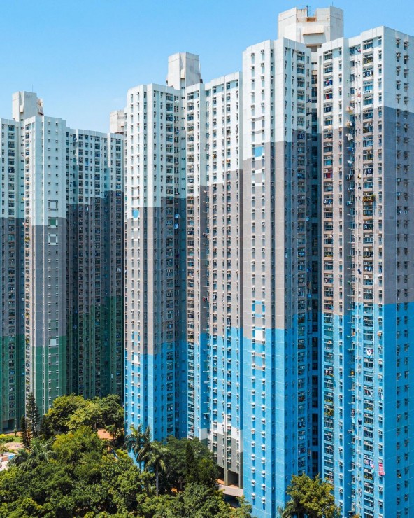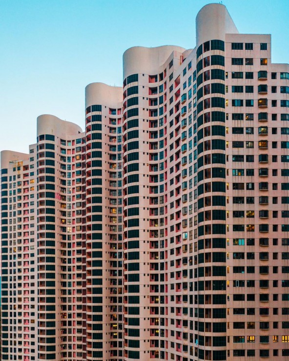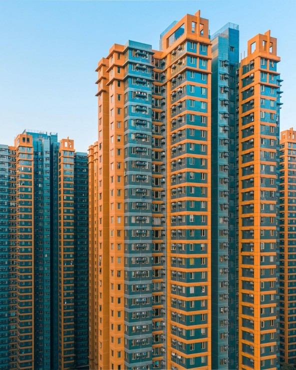 Мэнсон Йим — архитектурный фотограф, получивший образование в сфере городского планирования. Он влюблен в свой город, и даже этот на первый взгляд пугающий бетонный объем, выглядит на снимках Йима, словно цветное лего с идеальной геометрией.