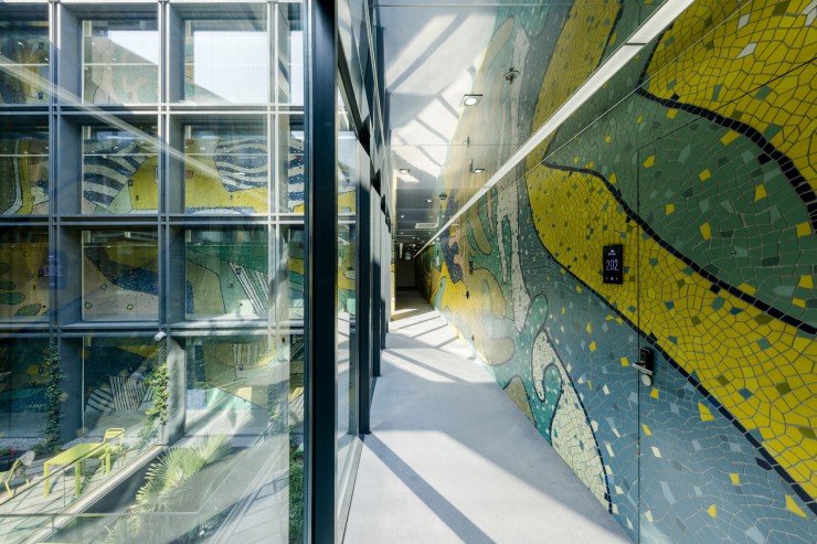 Сегодня район так же является очень оживленным. Здесь сосредоточено большое количество разнообразных объектов общественного назначения, образующих собой мозаику этнического, религиозного и межкультурного взаимодействия. Мы не зря использовали слово «мозаика», ведь в новые стены отеля были интегрированы мозаичные полотна, служащие отсылкой к архитектуре того времени. Да и само здание выдержано в духе архитектуры 1970-х годов.