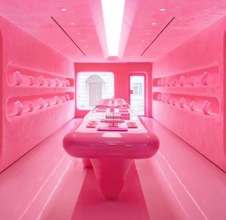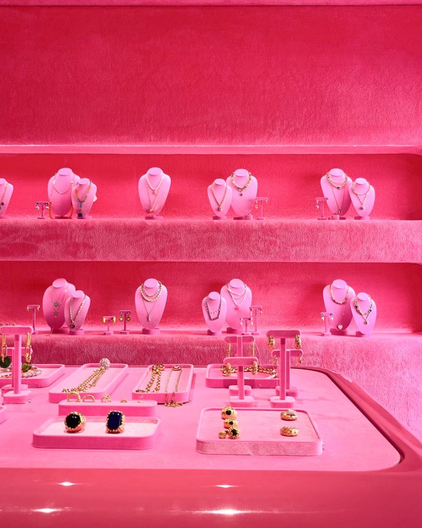Тренд лета 2023 «Барбикор» продолжает захватывать планету, и Москва не исключение. Ярким подтверждением тому, является новый ювелирный бутик Viva la Vika недавно открывшийся на шумящих на всю столицу Патриках. Интерьер магазина тотально-розовый и далек от привычного представления о магазинном пространстве. Входя внутрь, посетители ощущают себя так, словно они попали внутрь розовой упаковочной коробки самого бренда. Дизайн интерьера бутика разработала архитектор Елена Локастова, ранее уже имевшая опыт работы с ювелирными брендами.