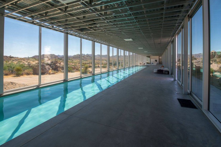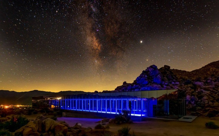 Дом прямоугольной формы с полностью зеркальным фасадом расположен на территории национального парка-пустыни Джошуа Три. Внутри находятся три спальни, четыре ванных комнаты и бассейн. Объявленная стоимость покупки $18 млн. Продажа открыта для покупателей со всего мира.