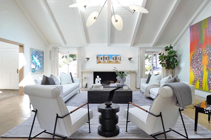 Общая площадь особняка 1179,87 кв. м., внутри пять спален, шесть ванных комнат, собственный тренажерный зал, рабочий кабинет и просторная гостиная с высокими потолками и мансардами окнами. В интерьере современная мебель соседствует с винтажными предметами и множеством произведений искусства, включая картины, написанные самим Джимом Керри.
