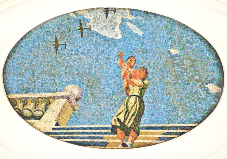 Немного справочной информации. Мозаика — старинное искусство, уходящее своими корнями в глубокую древность. Историю мозаики в России, принято связывать с именем Михаила Ломоносова в XVIII веке и родом Фроловых в XIX веке. Семья Фроловых занималась созданием мозаик для царской династии и церкви, а в последствии украшала своими творениями особняки и дома частных заказчиков. В том числе, в 1925 году руками Владимира Александровича Фролова, на тот момент руководителя мозаической мастерской Академии художеств в Ленинграде, на фасаде Киевского вокзала в Москве появились два мозаики с изображением герба СССР.