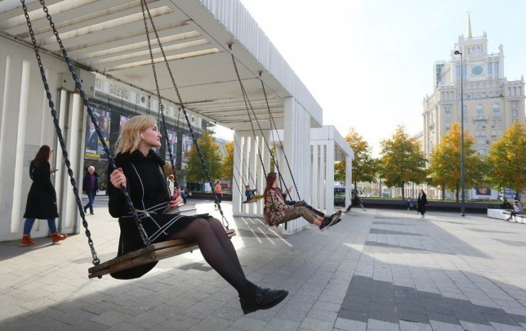 Тактический урбанизм такого рода станет прекрасным решением для небольших площадей, которые требует быстрого и качественного благоустройства. Так, в 2016 году на Триумфальной площади появились качели, которые по сей день радуют москвичей и гостей столицы.
