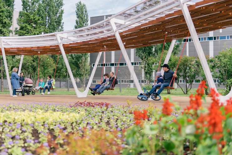Казань, как один из городов задающих параметры благоустройства, хорошо знает о ценности качелей в городской среде. Авторы «Фестивального бульвара» сделали их одной из основных точек притяжения пространства.