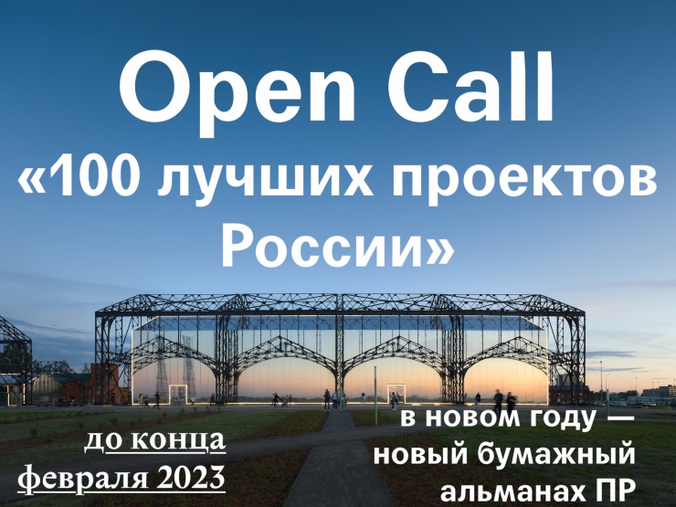 «100 лучших объектов России» — печатный журнал «Проекта Россия» имеющий 30-летнюю историю. Попасть на страницы издания, значит официально быть признанным и войти в число лучших отечественных архитектурных практик.