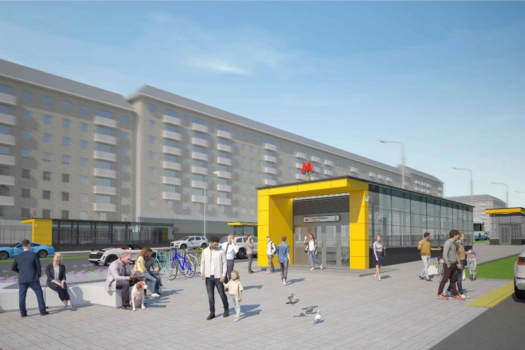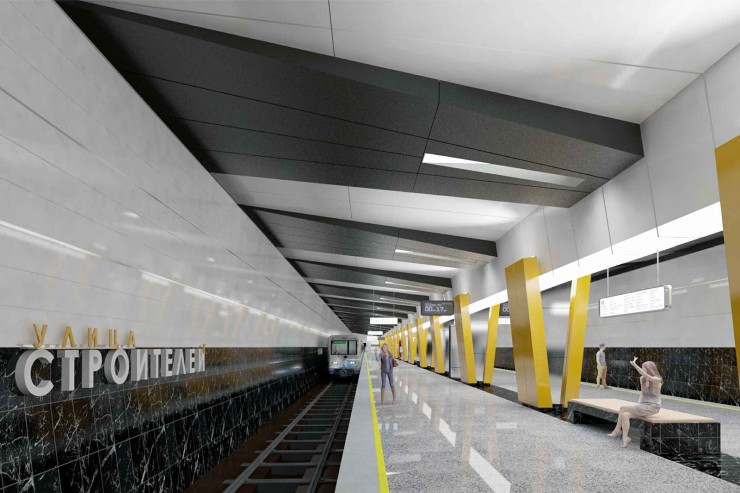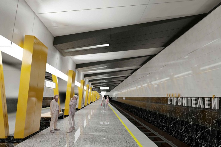 Для полноты картины вход и выход станции «Улица строителей» будет облицован металлическими панелями желтого цвета.