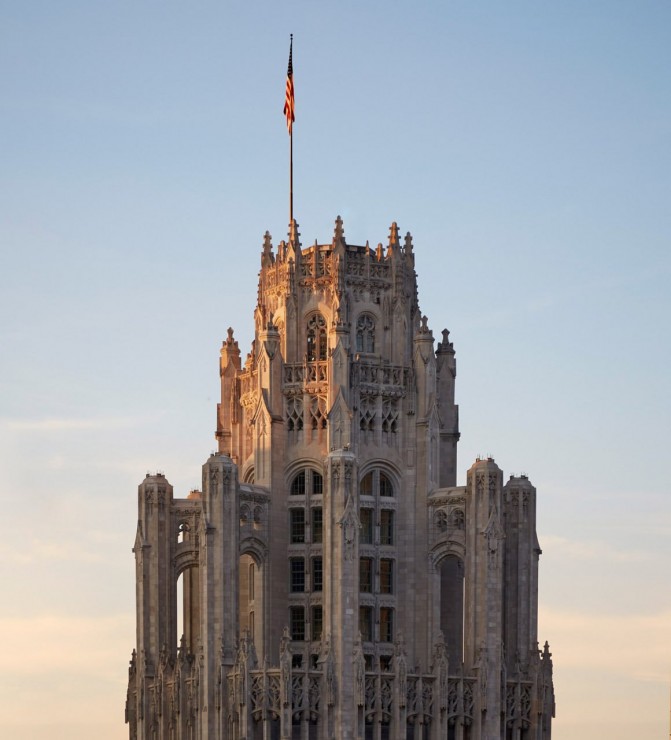 Небоскреб Chicago Tribune – можно назвать одной из визитных карточек Чикаго. Здание в стиле неоготика было построено в 1925 году, как официальный офис газеты, чье имя и получил небоскреб. В таком статусе он просуществовал до 2018 года, до момента, когда газета претерпев ряд изменений сменила локацию. Опустевшее здание было решено переделать в жилой комплекс. Ответственным за редевелопмент архитектором стал Solomon Cordwell Buenz. Он разместили в самом Chicago Tribune и прилегающих к нему корпусах, 162 квартиры.