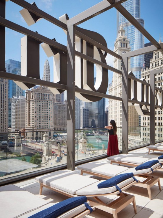 Чтобы сохранить приватность, жильцам сделали отдельный новый холл. Подчеркивая статусность недвижимости, под ажурной неоготической «короной», расположенной на верхнем ярусе небоскреба, устроили террасу, а под исторической вывеской Chicago Tribune – бассейн и зону СПА.