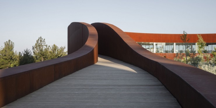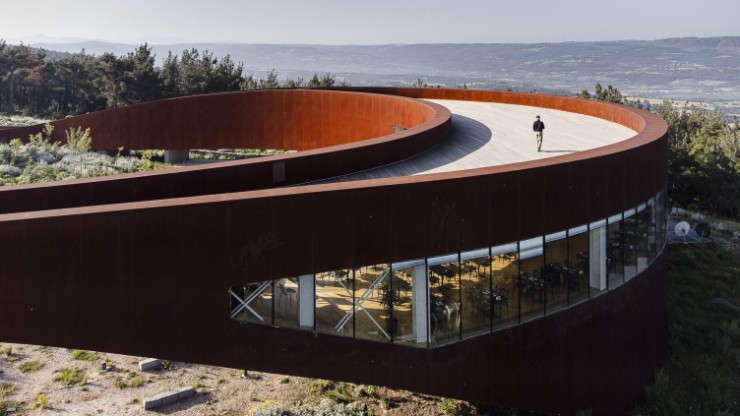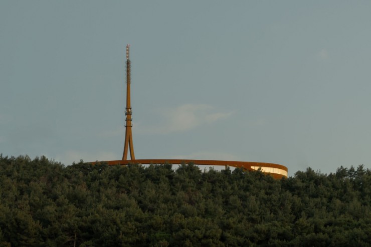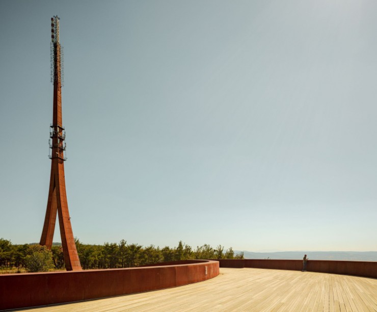Чтобы посетители не испытывали воздействие излучения передатчиков, сама телебашня находится напротив общественной части петли. Вышка спроектирована так, чтобы выдерживать ветры скоростью до 44,5 метров в секунду. Она собрана из стальных модулей, включая 40-миллиметровые стальные листы и обшита нашей любимой кортеновской сталью, которая идеально смотрится в любом месте, а особенно, если рядом находятся сосны (как здесь), сочетаясь с ними по фактуре и цвету.