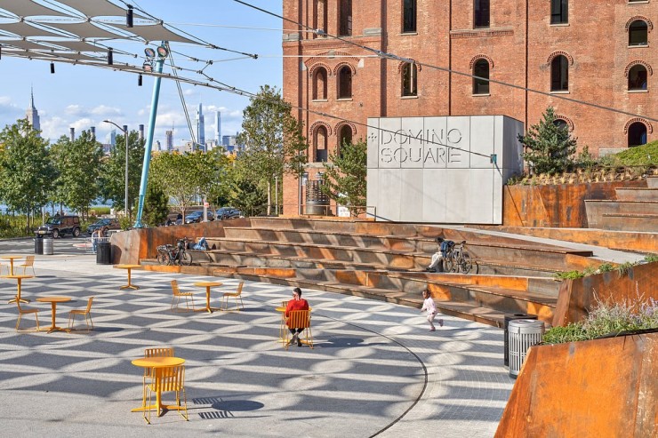 Общественная зона площадью 3065 кв. м. была разработана компанией Field Operations и находится между жилым домом One Domino Square и офисным комплексом The Refinery at Domino.