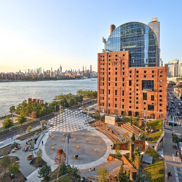 Компания Two Trees Management официально объявила о завышении всех работ по благоустройству территории офисного комплекса The Refinery at Domino, построенного на территории бывшего сахарного завода Domino в Уильямсбурге, Бруклин, США.
