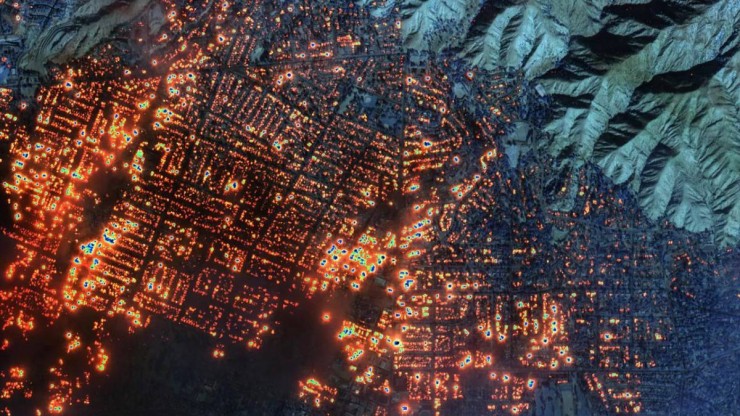 Фото: снимок пожаров в округе Лос-Анджелес сделанный со спутника, источник: Getty Images / Maxar.