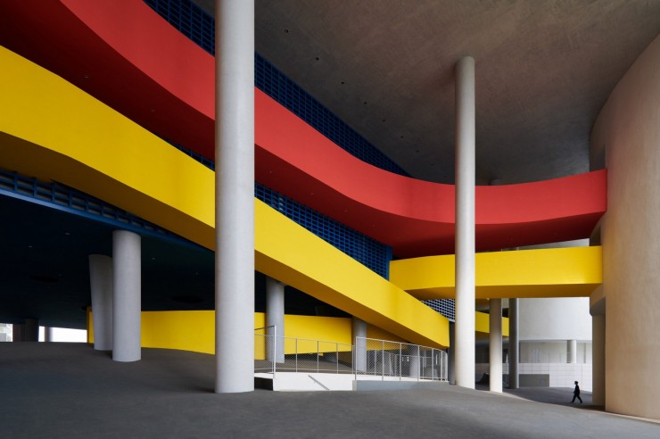 Ярко окрашенные объемы и широкие изгибы создают атмосферу свободы в экспериментальной школе Haikou Jiangdong Huandao, которую архитектурное бюро Trace Architecture Office построило в округе на китайском острове Хайнань.