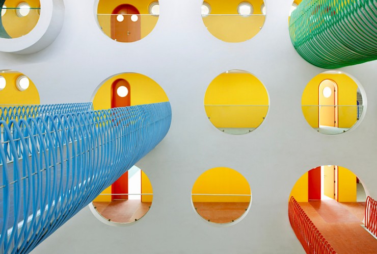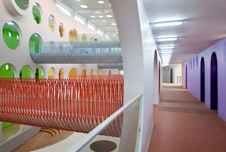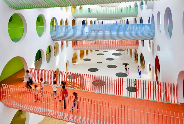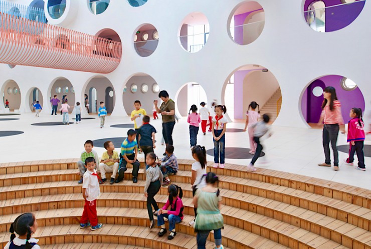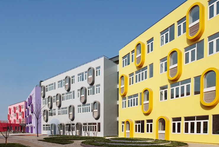 Архитектурное бюро SAKO под руководством Кэйичиро Сако разработало проект начальной школы ZIGZAG в Тяньцзине, Китай, поставив во главу идею сделать обучение увлекательным. Школа состоит из восьми корпусов, внутри которых находятся общеобразовательные и специальные классы. Между собой корпуса соединяют 12 цветных мостов, подвешенных под разными углами. В свою очередь четырехэтажные здания расположенных в зигзагообразном порядке. Каждый этаж имеет свой цвет, таким образом в сумме получается набор из 32 комбинаций.