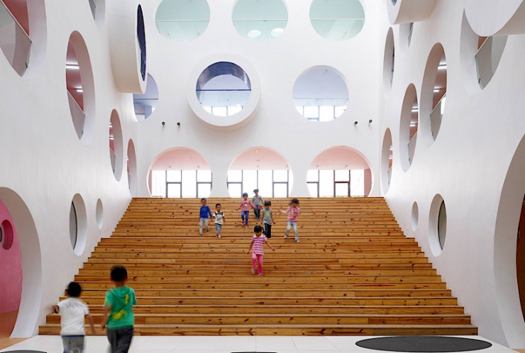 Архитектурное бюро SAKO под руководством Кэйичиро Сако разработало проект начальной школы ZIGZAG в Тяньцзине, Китай, поставив во главу идею сделать обучение увлекательным. Школа состоит из восьми корпусов, внутри которых находятся общеобразовательные и специальные классы. Между собой корпуса соединяют 12 цветных мостов, подвешенных под разными углами. В свою очередь четырехэтажные здания расположенных в зигзагообразном порядке. Каждый этаж имеет свой цвет, таким образом в сумме получается набор из 32 комбинаций.