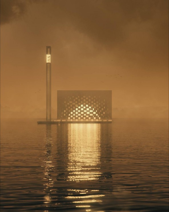 «Возведение мечети приурочено к 1100-летию принятия ислама в России. Новое здание должно стать символом религии в стране и ее современным знаком. Этот статус определил архитектурную концепцию — прообразом будущей мечети стала Кааба, главная мусульманская святыня. Мечеть стоит на воде, соединяясь с берегом Волги с помощью общественной площади. Здание представляет собой черный куб, в центре которого находится молельный зал. Традиционная для мечети форма купола отсылает к расположению молящихся вокруг Каабы. Пространство по периметру занимает музей истории ислама. Экспозиция обрамляет зал, поддерживая связь с центром мечети. Облик здания отражает сочетание светского и религиозного, открытого и в то же время сакрального. Решение фасадов развивает эту идею: каменные блоки сдвинуты таким образом, чтобы в кладке образовались просветы. Так купол зала можно увидеть с большого расстояния и с идущих по реке судов. Масштаб мечети подчеркивает единственный минарет, в котором находится смотровая площадка. Расположение на воде раскрывает значение слова: «минарет» в переводе с арабского — «маяк». Он символизирует духовный ориентир для верующих и в то же время является ориентиром в городе» — говорится в презентации проекта «Цимайло Ляшенко и Партнеры».