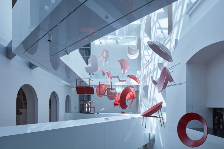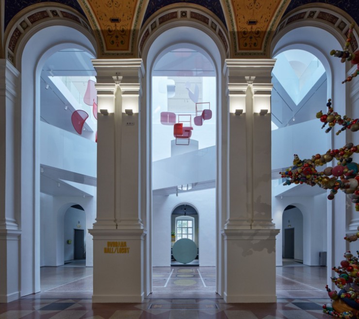 В атриуме с верхним освещением создана система мостиков, представленная студией Olgoj Chorchoj, которая соединяет между собой этажи здания и позволяет более детально рассмотреть произведения искусства, выставленные в атриуме.