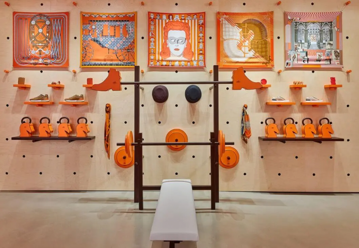 В Сингапуре открылся спортивный зал от имени знаменитого люксового фешен-бренда Hermes. Интерьер всех помещений выполнен в фирменном цвете марки — оранжевом. Каждый уголок тренажёрного зала, каждая его деталь, вплоть до спортивного инвентаря и формы тренеров украшает логотип Hermès. Идея люксовости протянута через всю концепцию дизайна интерьера. Например, боксёрский ринг по вечерам превращается в сцену для dj-сетов и модных шоу.