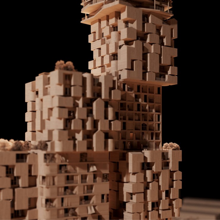 Hora Vertikale Towers — многофункциональный комплекс площадью 55 000 квадратных метров, задуманный как «вертикальная деревня» высотой 140 метров, интегрированная в зеленое общественное пространство, также созданное OODA. Комплекс состоит из двадцати кубов размерами 22,5х22,5 метров, расположенных на разной высоте, что создает плавный и динамичный профиль здания.