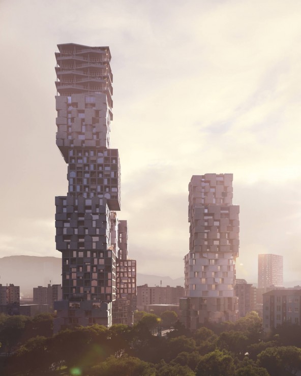 Hora Vertikale Towers — многофункциональный комплекс площадью 55 000 квадратных метров, задуманный как «вертикальная деревня» высотой 140 метров, интегрированная в зеленое общественное пространство, также созданное OODA. Комплекс состоит из двадцати кубов размерами 22,5х22,5 метров, расположенных на разной высоте, что создает плавный и динамичный профиль здания.