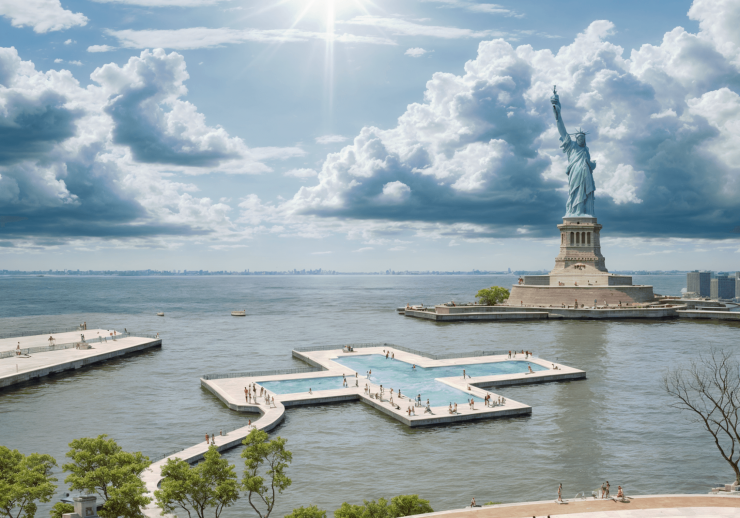 Недавно мы рассказывали о том, что в акватории Москвы-реки появится понтонный бассейн, как следом пришла информация из другой точки планеты. На водных просторах реки Ист-Ривер протекающей в Нью-Йорке, тоже появится плавучий бассейн. Реализацией проекта занимается компания + POOL, выигравшая тендер. Бассейн будет иметь размеры 217х217 футов, и расположится неподалеку от Бруклинского моста. Так как река достаточно загрязнена, помимо основной функции, конструкция включает систему очистки воды. Визуализации представленная архитекторами показывают рендеры на фоне различных городских локаций Нью-Йорка, включая Статую Свободы, Бруклинский мост и Мост Ньюбург.