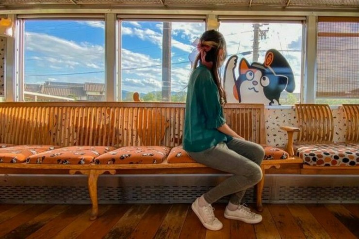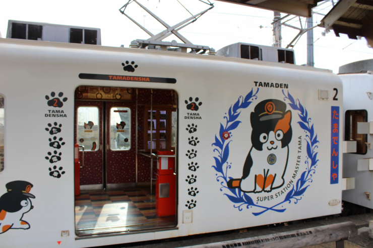 Чуть позже, поезда идущие до Тама, тоже переоборудовали в кошачьи: вагон с усами, украшенный ушками, подушки на сиденьях и занавески с изображаем пушистой начальницы и других котиков, ковры и множество мимишных кото-деталей сделали этот поезд самым любимым не только у местных, но и у туристов.